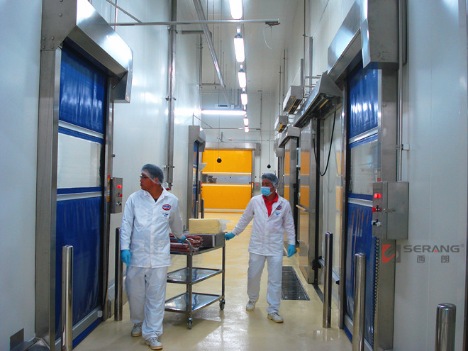 USU304不鏽鋼快速門用於披薩食品製造工廠內高潔淨車間。